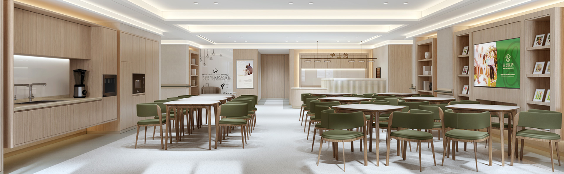 融入“比家更溫暖”的服務(wù)理念,既為長(zhǎng)者提供專業(yè)、適老的照料空間,也為長(zhǎng)者塑造更加舒適、靈動(dòng)的居住體驗(yàn)。設(shè)有閱讀區(qū)、書畫區(qū)、棋牌室等多功能活動(dòng)區(qū),各照料單元均設(shè)有就餐區(qū)及活動(dòng)區(qū),滿足老人共進(jìn)三餐、日常活動(dòng)及情感交流的需求。